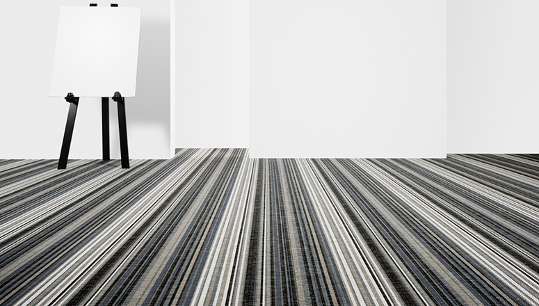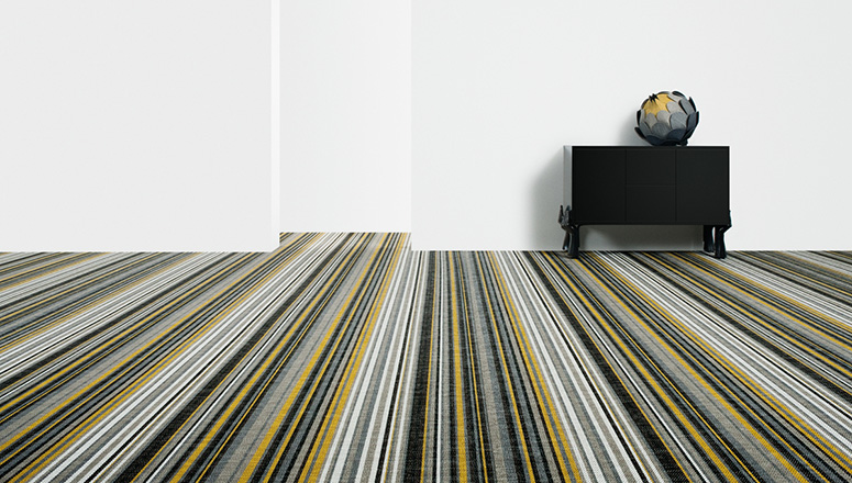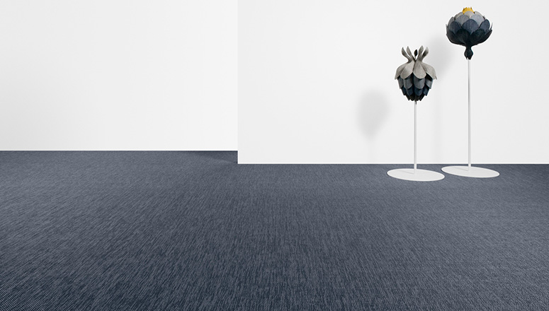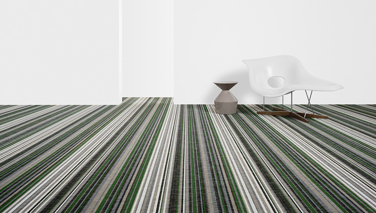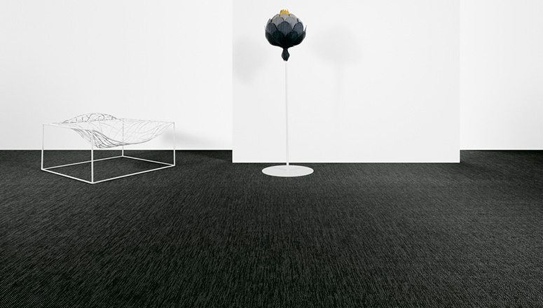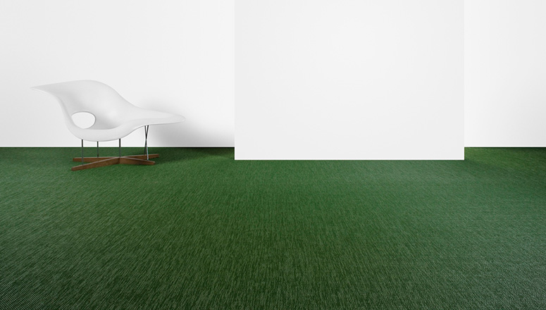 Première gamme de revêtements de sol au monde basée sur un plastifiant composé de matières premières renouvelables, le fil de trame est bicolore, variant ainsi du blanc au marron en une séquence irrégulière.